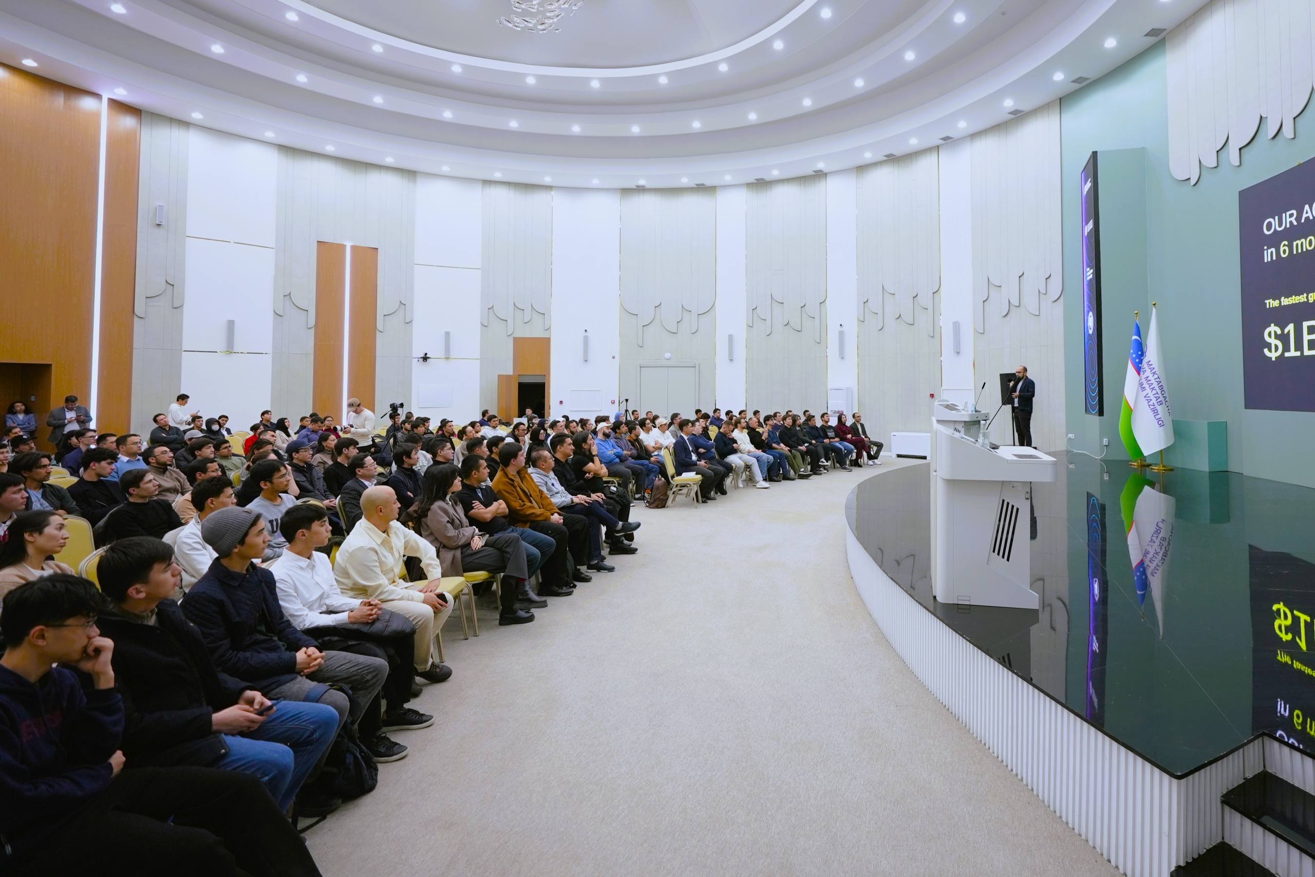 11 декабря в Университете «Новый Узбекистан» состоялось первое мероприятие из цикла AI Talks, организованное университетом совместно с центром ALPHA Education и Stanbase. Гостем стал Алекс Машрабов, генеральный директор Higgsfield AI, чье выступление носило амбициозное название: «Как специалисты из ЦА строят следующий AI-декакорн».