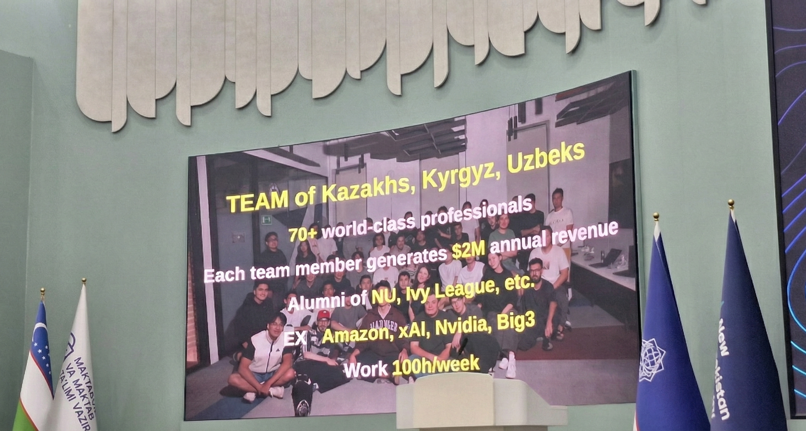 Центральным тезисом выступления стало утверждение, что Центральная Азия способна генерировать технологические «единороги» (компании с оценкой более $1 млрд). Команда Higgsfield AI состоит из более чем 70 специалистов мирового класса. Она включает выходцев из Казахстана, Кыргызстана и Узбекистана, а также выпускников университетов Лиги Плюща. Среди сотрудников есть бывшие специалисты Amazon, xAI, Nvidia и так называемой Big3 (традиционное обозначение для крупных технологических гигантов).