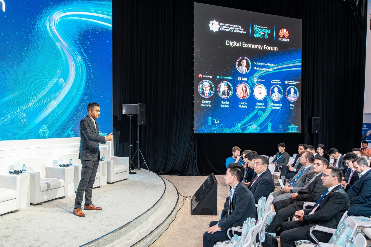 В рамках серии тематических сессий были рассмотрены актуальные вопросы цифровых преобразований секторов экономики в эпоху бурного развития и поиска сценариев применения Искусственного Интеллекта, а также создана атмосфера сотрудничества для продвижения новых инициатив и партнёрств. Модератором форума выступил д-р Мохамед Мадкур, Вице-президент по ИКТ стратегии и маркетингу Huawei в регионе Ближнего Востока и Центральной Азии. В своей вступительной речи он отметил: «Форум по цифровой экономике — это уникальная площадка, которая объединяет представителей государственных структур, ведущих международных экспертов, отечественных новаторов и ключевых игроков цифрового рынка. Сегодня здесь встречаются те, кто формирует будущее, чтобы поделиться практическим опытом и идеями. Именно такие встречи открывают новые горизонты сотрудничества и становятся мощным импульсом для достижения амбициозных целей по развитию цифровой экономики Узбекистана».